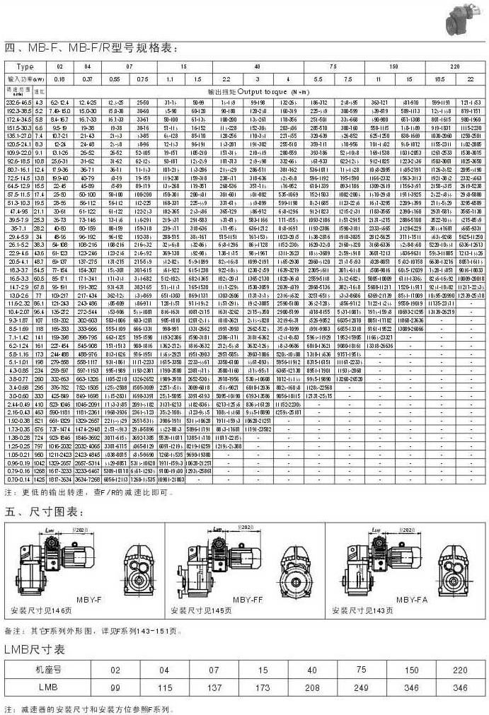 MB-F , MB-F/R型號規格表尺寸圖表LMB尺寸表