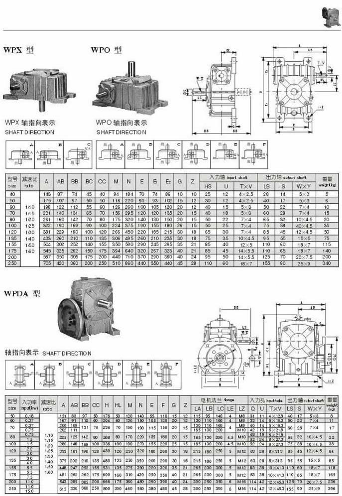WPX,WPO WPDA型型號(hào)參數(shù)圖表